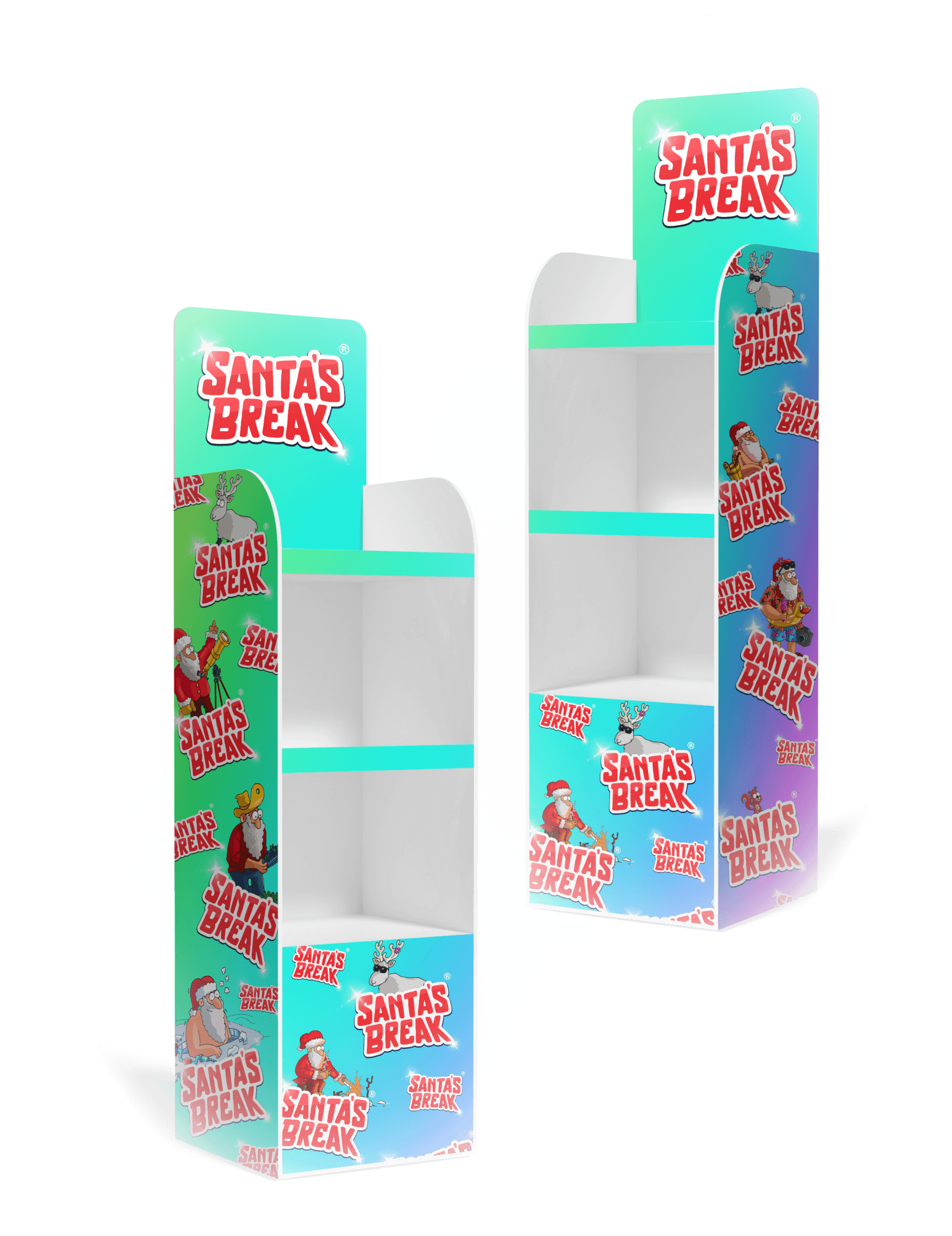 Parhaan näkyvyyden tuotteelle  saatte tilaamalla näyttävän hyllyllisen Santa’s Break tuotteita.